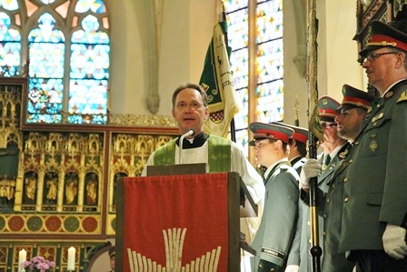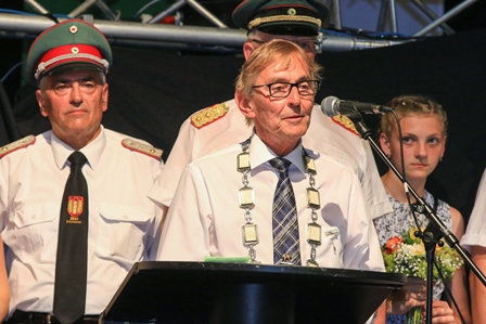 Die feierliche Eröffnungsfanfare auf der Empore, unter der Leitung von Sven Kinne, war der Start für die Begrüßungsworte von Oberst Hans-Dieter Petereit. Ihm folgten Bürgermeister Peter-Paul Ahrens und Landrat Thomas Gemke, bevor Seine Durchlaucht Maximilian Fürst zu Bentheim-Tecklenburg die eigentliche Traditionsrede hielt.