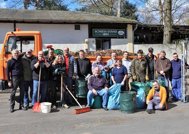 Es ist mittlerweile ein fester Termin im Jahresprogramm des IBSV: einmal im Jahr bittet der IBSV seine Mitglieder um Unterstützung beim „Reinigungstag“ rund um den Schießstand am Strobler Platz sowie rund um das Vereinsheim im Lägertal. So packten auch in diesem Jahr zahlreiche IBSV’er mit an, um unter anderen dem Bereich rund um den Schießstand einen „Frühjahrsschnitt“ zu verpassen. So konnte Oberst Hans-Dieter Petereit, der seinen Anhänger für die Reinigungs-Aktion zur Verfügung stellte, jede Mende Grünschnitt abtransportieren und entsorgen.