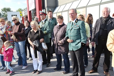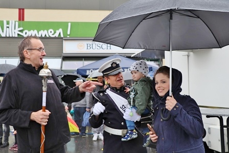 Wie sagte Marktleiter Paul Nowak bei seiner Begrüßung zu Recht:“ Es ist schon erstaunlich wie viele Leute bei diesem Dauerregen unser Fest besuchen, ein großes Lob vor allem an die 2 Kapellen, den IBSV Spielmannszug und die Iserlohner Stadtmusikanten.“ Sie brachten Stimmung in die trübe, graue Welt an diesem Spätnachmittag. Rund um Marktkauf Nowak war alles bestens organisiert. Die leckeren Bratwürstchen vom Grill dufteten von weitem und auch die große Tombola hatte viele Preise parat. Der Stab des IBSV bewirtete die Gäste mit Getränken und die schon bekannten Helfer am Grillstand hatten an diesem kühlen Tag den besten Arbeitsplatz. Das amtierende Königspaar, Martin König mit seiner Königin Silke Klippert und ein Teil des Hofstaats gaben sich die Ehre. Unter den Gästen auch das Ex- Königspaar Ralf Wille und Kirsten Greitzke. Besuch von der Krombacher Brauerei durch Lutz Borgolte und auch vom Ehrenoberst des IBSV Hans-Dieter Petereit. Ehrenoberstleutnant Georg Fischer, als Mitgründer dieser Aktion, freute sich über die rege Teilnahme. Das Schmückende Beiwerk hatte sich ein trockenes Plätzchen gesucht unter einem der vielen Zelte, die vor dem Regen schützten. Fleißige Helfer vom Markkauf Nowak waren überall in Aktion. Das Fazit am Ende dieser Veranstaltung: „Es hat sich gelohnt an dieser Veranstaltung festzuhalten, denn selbst durch Petrus und seine Gießkannen waren die Besucher zahlreich vertreten.“