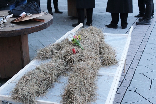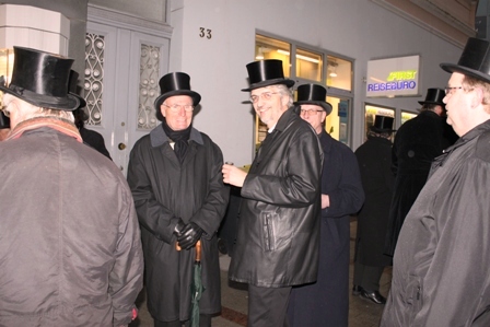 Startpunkt war wieder die Gaststätte "Treff am Neumarkt". Die Hauptperson, der Strohkerl, war pünktlich da und die Wirtin wartete schon mit einer kleinen Stärkung auf die Trauergemeinde.
