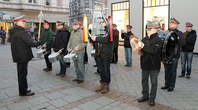 Dann setzte sich der Trauerzug, angeführt vom IBSV-Spielmannszug unter der Leitung von Tambourmajor Rainer Walter, zur nächsten Station in Bewegung.
