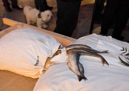 Danach marschierte die gut 80-köpfige Trauergemeinde zur "NORDSEE". Hier bekam der Strohkerl seine obligatorische Heringskette und die Marschierer leckere Fischhäppchen.